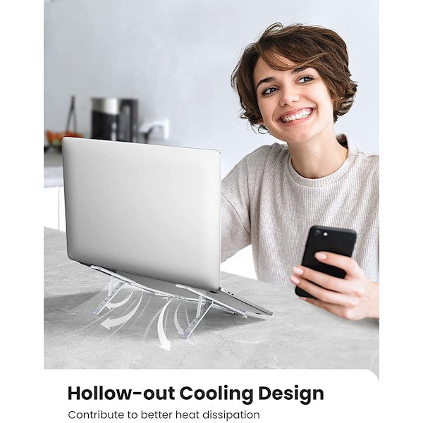- Features multiple height adjustments for customized comfort. The non-slip silicone pads keep your laptop secure, preventing sliding and scratches.
